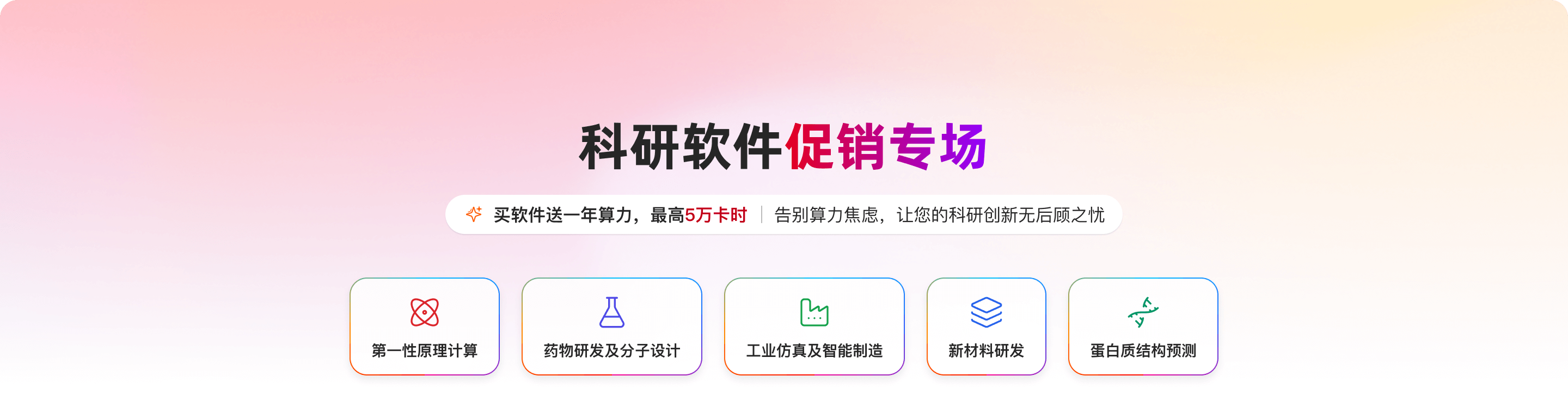1.在超算互联网应用商城购买任意软件类商品,累计消费金额达到1万元,即可获赠平台1万卡时的算力资源礼。消费金额每增加1万元,赠送算力相应增加1万卡时礼,多买多送(累计最高可获赠5万卡时算力资源礼)。